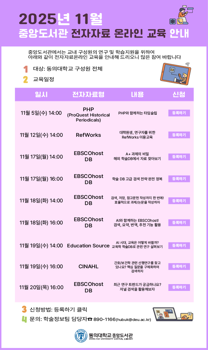 2025년 11월 중앙도서관 전자자료 온라인 교육 안내