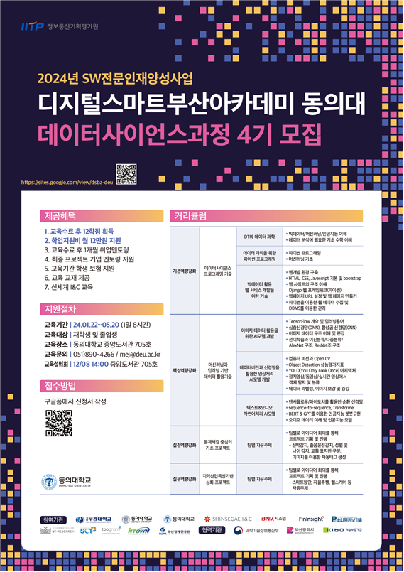 - 전화상담 : 디지털스마트부산아카데미 동의대학교 행정실 (051-890-4266)