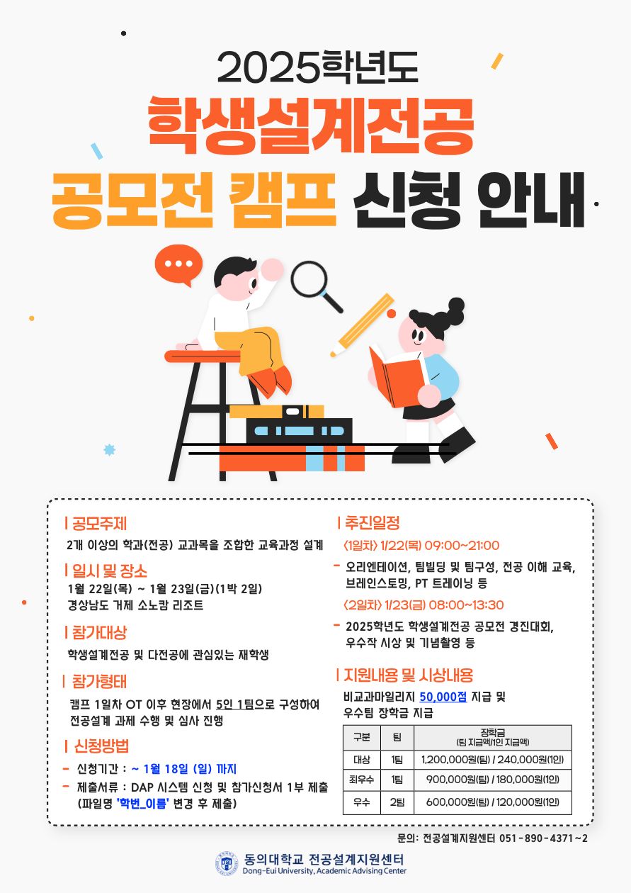 [대학혁신지원사업] 2025학년도 학생설계전공 공모전 캠프 참가자 모집 안내