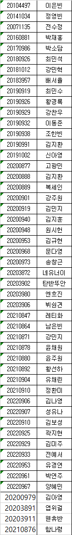 해당 명단에 없으신 학생분들은 빠르게 행정실로 전화주시길 바랍니다.
