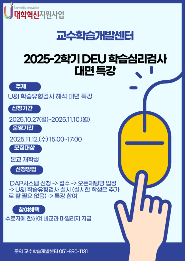 [교수학습개발센터] 2025-2학기 DEU 학습심리검사 대면 특강