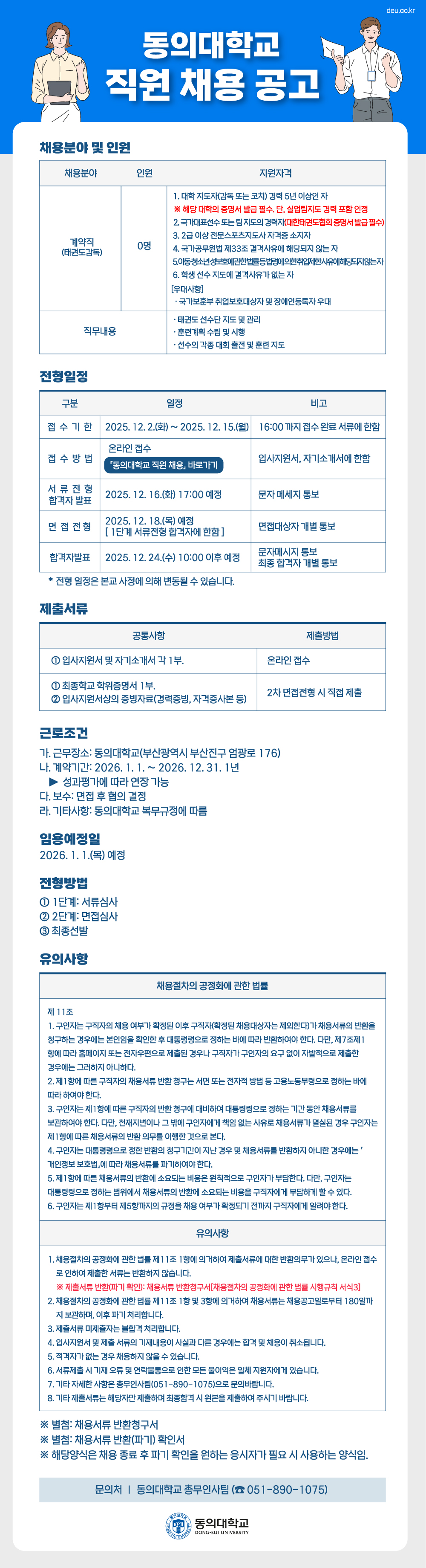 동의대학교 체육진흥단 태권도(겨루기) 감독 채용 안내